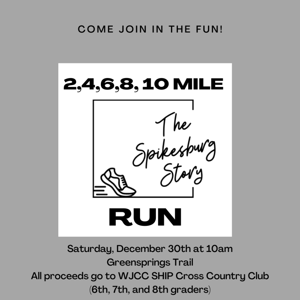 In order to fundraise for the upcoming season, the Spikesburg Story is having a 2, 4, 6, 8, and 10-mile fun run in December. On December 30th, area runners will flock to the Greensprings trail to run 2-10 miles together in support of middle school XC. We hope to see you out on the trail!