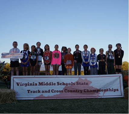 On the boy’s side, it was Jonathan Grimm who finished as the Virginia Middle School State Champion in a meet-record time of 12:45 for the 4k course. Grimm finished the year as the state leader at the 4k and 5k distances. This past Saturday, Grimm finished his stellar XC season with another win at the Foot Locker South Region Championships in Charlotte, NC. The 8th grader ran a 16:15 5k to win the 13-14 race. Jonathan has a very bright future ahead of him in the Bay Rivers District.